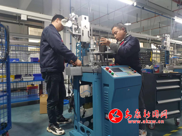 在安瑞智能制造公司試車間,工人們對一臺臺織襪智能一體機進行出廠前調試。這臺機器即將交付百潤襪業(yè)有限公司。“織縫翻一體智能織襪機結合了織襪,縫頭,翻襪三道工序,通過電腦系統(tǒng)控制一次完成,從而大大縮短了生產周期,減少生產場地,減少工人使用量等優(yōu)點,降低了生產成本,增強了市場競爭力,這和傳統(tǒng)襪機相比襪子織好翻過來送到縫頭車間縫合后再翻過來送到下道工序,具有革命性的突破。”投資公司總經理汪海寧介紹道。