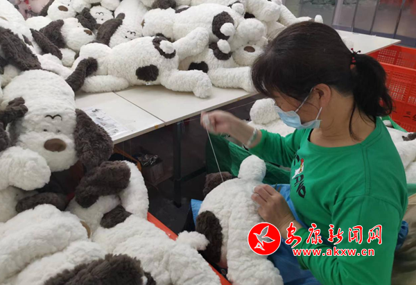 正月初十,五里工業(yè)集中區(qū)入園企業(yè)米小點品牌玩具管理有限公司生產車間內一片忙碌景象:機器作業(yè)聲不絕于耳,流水線高速運轉,工人們神情專注、忙而不亂、緊張有序,一個個形態(tài)各異、栩栩如生的毛絨玩具從流水線上快速成型。