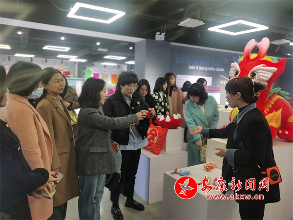 接下來漢濱區(qū)人社系統(tǒng)一行前往恒口示范區(qū)五大中心參觀學(xué)習(xí)。步入五大中心,一面由10976個毛絨玩具組成的毛絨玩具墻首先映入眼簾,引得女職工們駐足合影。在講解員細(xì)致入微的介紹引導(dǎo)中,女職工們了解了“總部+片區(qū)工廠+新社區(qū)工廠+支部工廠+家庭工坊”五級生產(chǎn)組織體系。