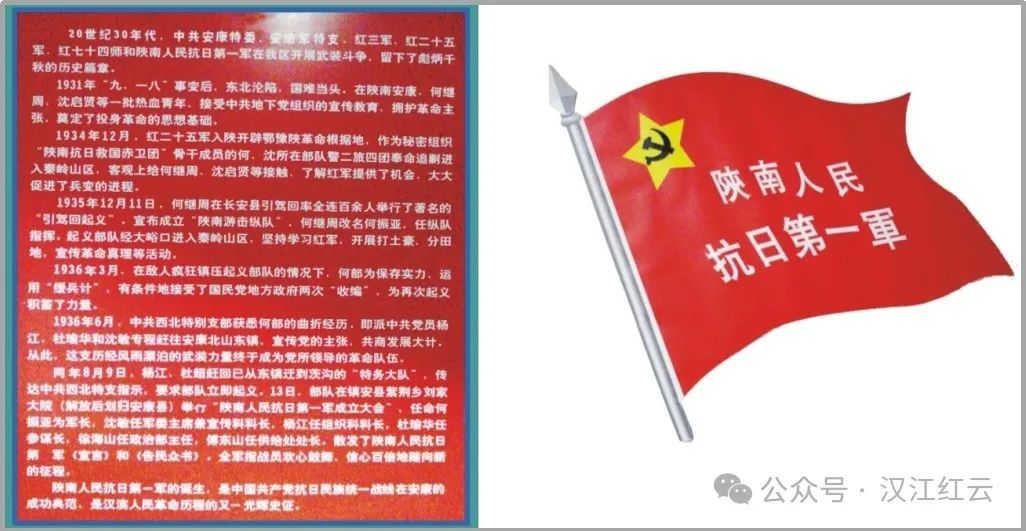 1936年8月13日,根據(jù)黨的指示,何振亞等人在紫荊河劉家大院正式宣告成立陜南人民抗日第一軍。何振亞任軍長,沈啟賢、杜瑜華任參謀長。“西安事變”發(fā)生后,中共西北特支將陜南人民抗日第一軍交由中共中央代表羅瑞卿同志負(fù)責(zé)接收。1936年12月20日,根據(jù)周恩來同志的指示,中共西北特支領(lǐng)導(dǎo)人徐彬如以“西救會(huì)”名義在西安舉行中外記者招待會(huì)上公開宣布:“在陜南有抗日第一軍的建制”。至此,陜南抗日第一軍揚(yáng)名中外。