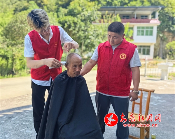 鎮(zhèn)村志愿者在汪河村為老人免費(fèi)理發(fā)