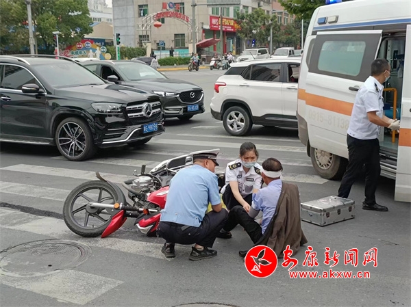 6月2日下午6時許,漢濱區(qū)育才西路至瀛湖方向十字路口發(fā)生一起交通事故,一輛黑色奔馳越野車和一輛二輪摩托車發(fā)生相撞,騎摩托的男子被撞翻在地,面部頭部和嘴都受傷流血,當時正值車輛高峰期,在此執(zhí)勤的江南交警中隊民警張聲榜第一時間撥打“120”救護車并和122事故處理中隊,同時疏導交通避免造成堵塞。120救護車為傷者緊急處理后迅速送往醫(yī)院救治,目前事故原因正在進一步調查中。(圖文/張樹進)uD4安康新聞網