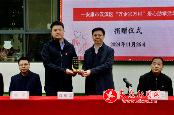 漢濱區(qū)向愛(ài)心企業(yè)贈(zèng)送紀(jì)念品 甘超/圖