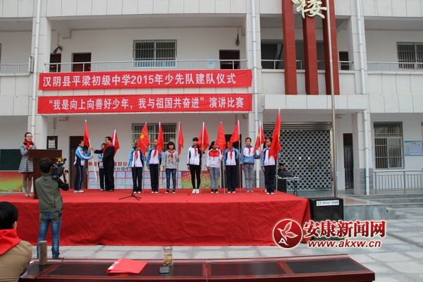 安康新聞網(wǎng)訊 (通訊員 林愛銘) 10月13日上午,伴隨著出旗音樂的響起,平梁初中在教學(xué)樓前拉開了“平梁初中2015年少先隊(duì)建隊(duì)儀式”的序幕。共青團(tuán)漢陰縣委副書記張歡,教體局工會(huì)主席陳文寶應(yīng)邀出席了建隊(duì)儀式。