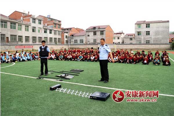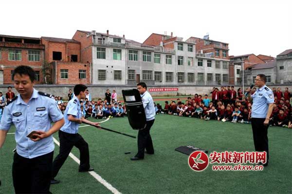 在活動(dòng)過(guò)程中,該所副所長(zhǎng)陳小兵先進(jìn)行了法律知識(shí)講座。講座中,陳所長(zhǎng)針對(duì)青少年犯罪的性質(zhì)、特點(diǎn)、根源,結(jié)合青少年的生理、心理特征,以生動(dòng)的事例,詳實(shí)的資料,通俗的語(yǔ)言,解讀了一個(gè)個(gè)觸目驚心的青少年犯罪案例,給學(xué)生上了一堂生動(dòng)的法制教育課。緊接著公安民警又向師生們展示了催淚噴射器、警棍、鋼叉、阻車(chē)器等警用裝備并模擬在遇到壞人時(shí)應(yīng)如何正確使用這些警用裝備以便最迅速、有效地將壞人制服,師生們聽(tīng)得聚精會(huì)神,博得了師生的陣陣掌聲! Vdz安康新聞網(wǎng)