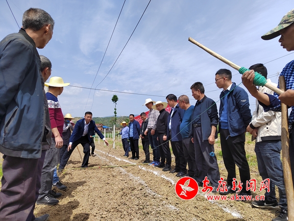 本網(wǎng)訊(通訊員 吳運祥)“玉米播兩行,大豆播兩行,玉米帶與大豆帶行距50公分……”日前,在蒲溪鎮(zhèn)溪畔社區(qū)產(chǎn)業(yè)基地,技術(shù)人員通過現(xiàn)場測量距離、示范講解等方式為種植大戶、新型經(jīng)營主體和部分村民詳細講解和示范大豆玉米帶狀復(fù)合種植技術(shù)。農(nóng)民們翻松土地,挖坑下種,在場人員認真學(xué)習(xí)“取經(jīng)”,人頭攢動,熱情高漲,干勁十足。