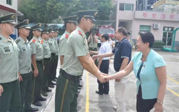 “致力于加快經(jīng)濟(jì)社會(huì)事業(yè)發(fā)展的同時(shí),每年‘春節(jié)’和‘八一’期間,劉飛霞等縣四大班子主要領(lǐng)導(dǎo)都會(huì)到駐漢部隊(duì)進(jìn)行走訪慰問,看望部隊(duì)官兵。近年來,累計(jì)開展走訪慰問3萬余人次,為部隊(duì)和退役官兵送去各類慰問品80萬元。”縣委常委,縣人武部部長吳杰說,“針對駐軍戰(zhàn)備訓(xùn)練和生活中的實(shí)際困難,劉飛霞還召開專題議軍會(huì)議,為部隊(duì)官兵免費(fèi)安裝更換空調(diào)、熱水器、晾衣房等,定期為隨軍家屬每月發(fā)放生活補(bǔ)助,解決隨軍家屬子女入學(xué)等問題,切實(shí)解除了駐軍官兵的后顧之憂,有效增強(qiáng)了軍人的榮譽(yù)感和使命感。”