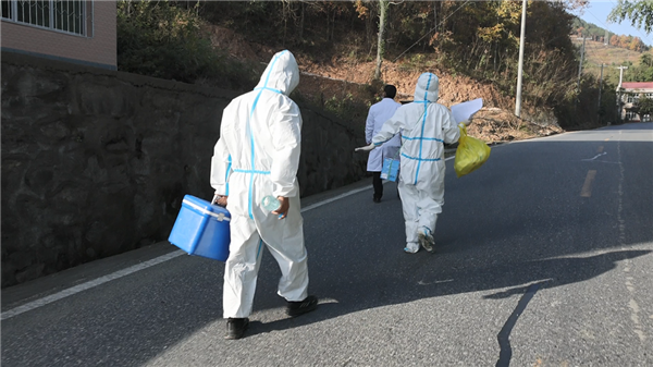 每天,穿著厚厚的防護服,背著重重的防疫箱,幾十里路走下來,常常都是汗流浹背、氣喘吁吁,那種累真的是想努力也使不上勁,入戶檢測完一戶,稍緩上幾十秒,便繼續(xù)前行至下一戶。“感覺經(jīng)常都是累的忙得吃不上一口飯、喝不到一口水。上山采核酸時常錯過飯點,一直要撐到下午4、5點鐘。有時候一身防護服一穿就是一整天,就是怕吃飯耽擱時間,因為我們必須迅速準確有序采集完當天的任務,其實,就是在和時間賽跑。但很多時候一聲‘謝謝、辛苦了’都頓時讓我們感覺所有付出都是值得的。”