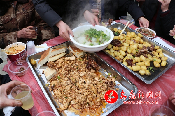 一場文化盛宴后,團圓飯成了濃濃年味里最溫暖的守候。在烹飪師傅的精心烘烤下,帶有地方特色的烤全羊美食新鮮出爐,金黃酥脆的羊肉散發(fā)出誘人的香味。三陽開泰全羊宴,把酒言歡敘豐年,村民們圍聚在一起大快朵頤,暢飲美酒,拉家常話團圓,在熙熙攘攘的人群中,在陣陣歡聲笑語里,年味在心頭漫開。