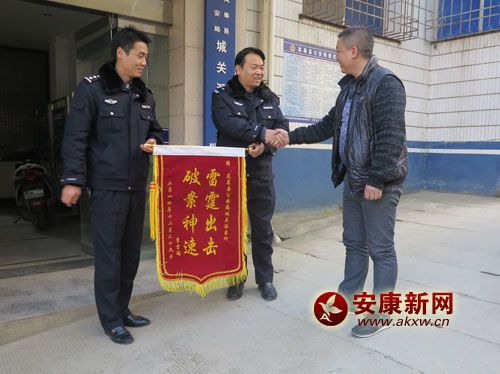 安康新網(wǎng)訊(通訊員 汪華平)12月29日,嵐皋縣城關(guān)鎮(zhèn)居民李吉瑞、常照兵分別將寫(xiě)有“雷霆出擊 破案神速”、“神警雄風(fēng) 犯罪克星”錦旗送到嵐皋縣公安局……