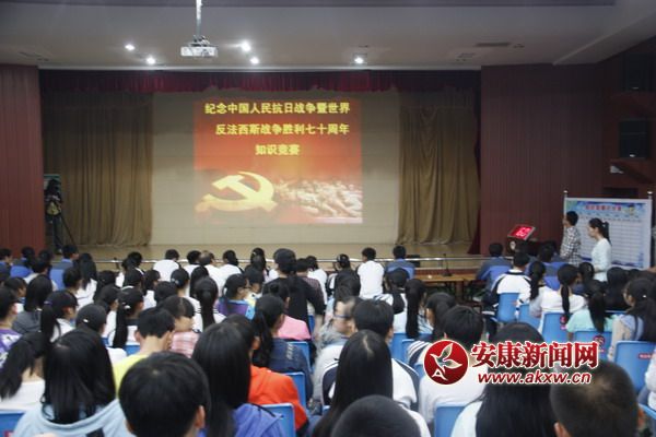 安康新聞網(wǎng)訊 9月11日晚上,寧陜中學(xué)階梯教室燈光明亮、人頭攢動,中國人民抗日戰(zhàn)爭暨世界反法西斯戰(zhàn)爭勝利70周年知識競賽正在有序進(jìn)行,來自高二、高三年級組文科班全體師生三百人參與此活動。8Kg安康新聞網(wǎng)