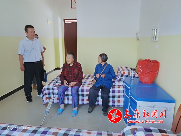 8月14日,我們幫她“高價”賣掉了豬和雞,帶著周友維老人順利入住敬老院,并且和王氏鳳老人分到一個房間。當(dāng)看到嶄新的被褥、可口的飯菜,還有貼心的臉盆、腳盆、牙刷、牙杯、手紙時,周友維老人滿臉笑容的告訴我們:“我愿意住在這里”。