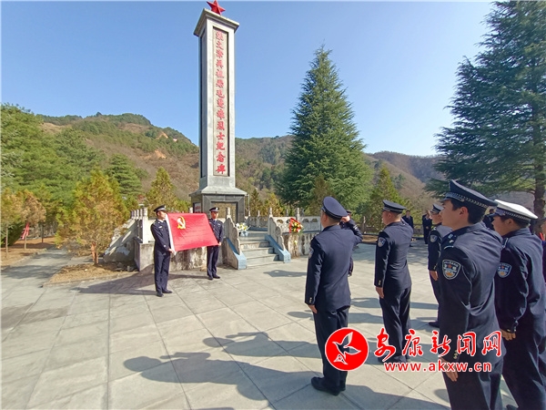 活動中,18名民警、輔警來到寧陜縣江口革命烈士陵園,緬懷張文津、吳祖貽、毛楚雄三位革命烈士。在紀念碑前,所有人員整齊列隊,民警代表向烈士敬獻花籃,向革命先烈致敬,聆聽三位革命烈士的英雄事跡,重溫入黨誓詞。江口派出所黨支部書記黃世明為參加活動的同志講授題為《弘揚革命精神 淬煉忠誠警魂》的專題黨課。參加活動的同志走進江口廉政教育基地接受廉政教育,接受心靈的洗禮,教育引導民警知敬畏、存戒懼、守底線。在寧陜縣公安局江口派出所“雙品培驗”中心,民警重溫入警誓詞,激發(fā)民警職業(yè)認同。