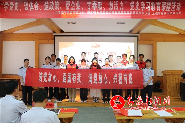 誦讀紅色經(jīng)典、感懷崢嶸歲月、聆聽革命故事、汲取榜樣精神、開展志愿服務(wù)、弘揚(yáng)時(shí)代新風(fēng)……7月22日,一場(chǎng)以“談體會(huì) 送政策 幫企業(yè) 甘奉獻(xiàn) 激活力”為主題的聯(lián)建活動(dòng)在寧陜縣上壩河國(guó)家森林公園拉開帷幕,讓來(lái)自共青團(tuán)寧陜縣委、寧陜縣稅務(wù)局及寧陜縣華鑫上壩河旅游有限公司的近40名黨員及青年干部接受了一場(chǎng)鮮活而生動(dòng)的黨史學(xué)習(xí)教育。