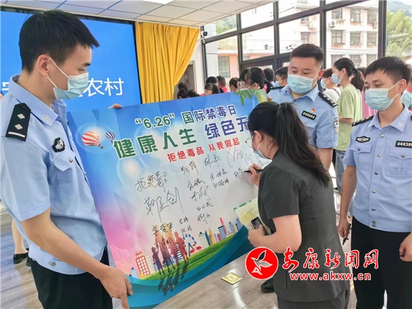 活動(dòng)以歌舞、三句半、詩(shī)歌朗誦、禁毒知識(shí)有獎(jiǎng)問答、觀看禁毒短視頻等多種方式呈現(xiàn)。禁毒民警用方言演繹的三句半《毒品害己又害人》,形象生動(dòng)地闡述了毒品的危害,贏得了現(xiàn)場(chǎng)觀眾的陣陣掌聲;社區(qū)姐妹花舞蹈隊(duì)活力四射的健身舞《花開無毒》,展現(xiàn)了對(duì)美好生活的向往,遠(yuǎn)離毒品健康人生煥發(fā)的蓬勃激情和生命力;配樂詩(shī)朗誦《讓生活更美好》呼吁我們共同攜起手來用愛喚起希望,用心抗拒毒魔;一曲《我相信》將活動(dòng)引入高潮。整個(gè)活動(dòng)過程中還穿插了毒品知識(shí)搶答、“健康人生 綠色無毒”簽字儀式,觀看禁毒宣傳短片“秦小尉”3D動(dòng)畫、MG微視頻等互動(dòng)環(huán)節(jié),在主持人帶領(lǐng)下的“拒絕毒品 從我做起”禁毒宣誓活動(dòng)更加彰顯了全社會(huì)群眾參與禁毒人民戰(zhàn)爭(zhēng)、打贏全面禁毒人民戰(zhàn)爭(zhēng)的信心和決心。