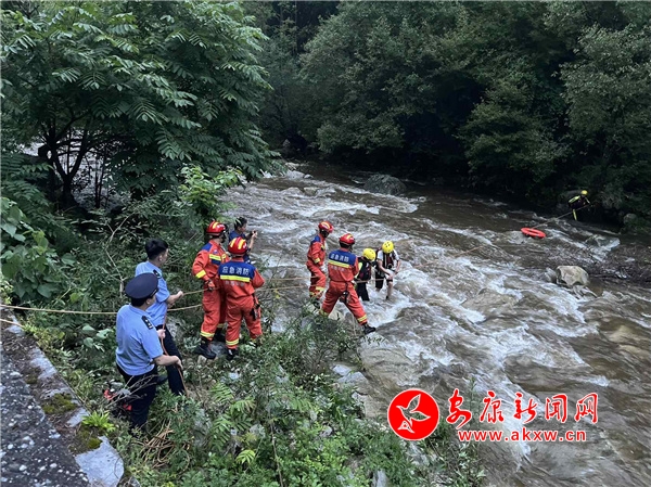 經了解,兩名被困旅客駕車來到寧陜縣游玩,不了解當地天氣情況及水位水勢,因暴雨導致河流漲水無法返回,該處手機無信號只能向過路人呼喊求救,請求幫助聯系110,游客向公安民警和消防大隊人員感謝道:“剛剛遇到危險情況時,我第一時間就想到了110,公安、消防永遠是人民群眾的守護神。”