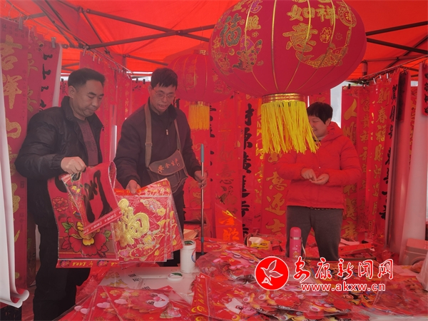 攤主劉女士說:“雖然今年過年時間比較晚,但是我們的年貨已經(jīng)早早備齊了,最近大家買對聯(lián)的熱情高漲,在新的一年祝愿大家龍年行大運、發(fā)大財,龍年吉祥。”