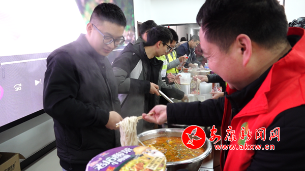 在城關(guān)鎮(zhèn)朱家嘴收費站,收費站秒變“愛心驛站”,當(dāng)?shù)馗刹恳约爸驹刚邔羲境巳藛T引導(dǎo)至收費所進(jìn)行取暖休息,向滯留司乘人員耐心解釋交通管制原因,安撫司乘情緒,并送去熱水、方便面、火腿腸等方便食物,暖心提供休息、充電等延伸服務(wù)。