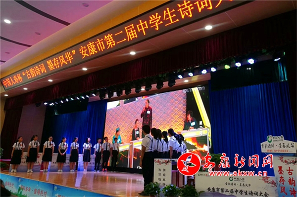 據(jù)悉,“古韻詩詞 墨存風華”安康市第二屆中學生詩詞大會自今年5月中旬啟動以來,經(jīng)過全市216所初、高中學校的近18萬名中學生初選,最終組成10個縣區(qū)代表隊進入了全市的半決賽。通過半決賽晉級比拼,來自漢濱、平利、紫陽、白河、旬陽、石泉6支代表隊共18位選手進入安康市第二屆中學生詩詞大會總決賽。本次決賽由市委宣傳部、市教育局、市文廣局、團市委聯(lián)合主辦,安康電視臺承辦,中國人壽保險安康分公司獨家冠名。決賽現(xiàn)場,來自主承辦單位的相關(guān)領(lǐng)導和平利中學師生觀摩團、社會嘉賓共計700余人參加并觀看了比賽盛況。