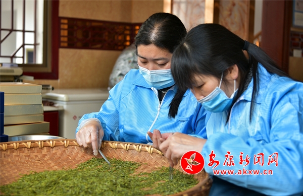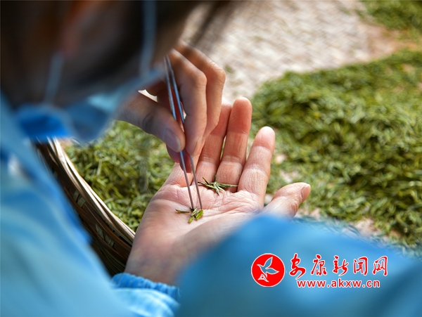 在精選車間,工人們熟練的挑選著茶葉,沖飲的成品茶都是一根根精挑細(xì)選出來的,每斤成品茶有上萬顆芽葉。