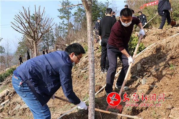 栽樹(shù)現(xiàn)場(chǎng),“為青山增綠,為黨旗增彩”,“共建共享山水綠,打造幸福萬(wàn)福山”等大紅標(biāo)語(yǔ)在陽(yáng)光的照耀下格外奪目,百余名黨員干部干勁兒十足,扶苗、揮鍬、鏟土、踩實(shí)……個(gè)個(gè)汗流浹背,熱烈而感人的勞動(dòng)場(chǎng)景撥動(dòng)著每一個(gè)人的心弦,燦爛的笑容掛在每一個(gè)人的臉上。經(jīng)過(guò)近2個(gè)多小時(shí)的辛勤勞動(dòng),200余棵新樹(shù)苗迎著春風(fēng)昂然挺立,讓原本荒蕪的山坡煥然一新。