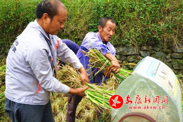 本網(wǎng)訊(通訊員 吳明林)初秋時節(jié),丹桂飄香,處處洋溢著豐收的喜悅,平利三陽鎮(zhèn)的田間地頭更是一片繁忙的景象。手持鐮刀、推著打谷機和板桶的人們穿梭于稻田之間,來回吃著各家的“打谷酒”,將飽滿且飽含希望的谷粒從稻穗上帶回家中,用滿倉來犒勞這大半年來的辛勞。