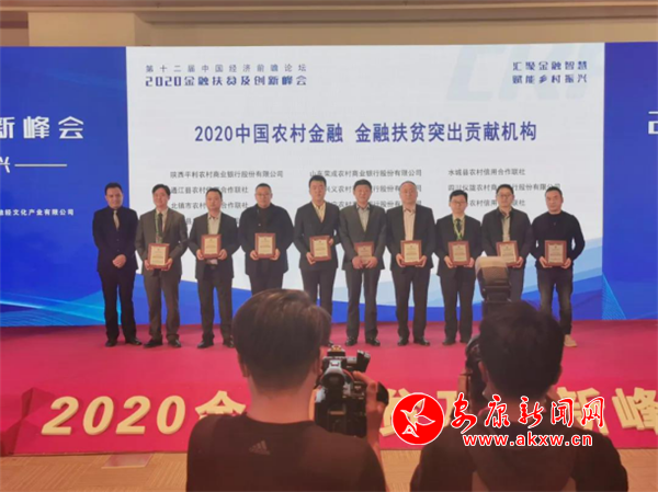 本網(wǎng)訊(通訊員 田華)11月21日,由國(guó)務(wù)院發(fā)展研究中心、中國(guó)扶貧基金會(huì)共同指導(dǎo),中國(guó)經(jīng)濟(jì)時(shí)報(bào)社、國(guó)研經(jīng)濟(jì)研究院主辦的第十二屆中國(guó)經(jīng)濟(jì)前瞻論壇專題論壇—2020金融扶貧及創(chuàng)新峰會(huì)在國(guó)家會(huì)議中心舉行。來自全國(guó)各省、區(qū)、市百余家農(nóng)商銀行、農(nóng)信聯(lián)社代表等共計(jì)200人參加。平利農(nóng)商銀行在全國(guó)500家金融機(jī)構(gòu)參選過程中,脫穎而出,榮獲“2020年中國(guó)農(nóng)村金融 金融扶貧突出貢獻(xiàn)機(jī)構(gòu)”榮譽(yù)稱號(hào)。