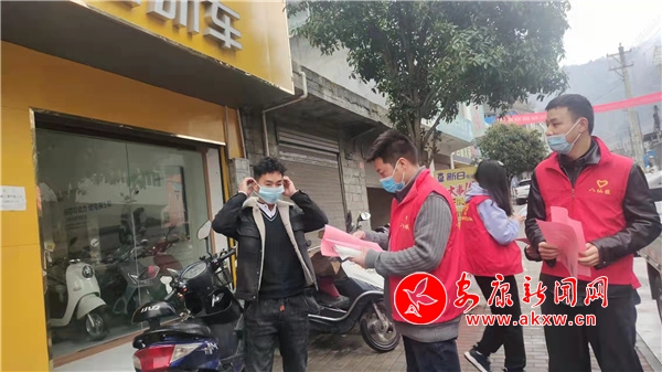 3月25日,平利縣八仙中學(xué)志愿者小分隊(duì)?wèi)?yīng)邀走進(jìn)八仙鎮(zhèn)街道,開展疫情防控宣傳志愿服務(wù),他們走進(jìn)門店超市、小區(qū)、市場,廣泛宣傳勤洗手、常通風(fēng)、戴口罩、測體溫、打噴嚏捂口鼻、少出門、不聚集,做好疫苗接種等疫情防控常識(shí),挨個(gè)勸說,挨個(gè)引導(dǎo),充分發(fā)揚(yáng)了先鋒模范作用。 (圖文/李傳祥)Sf4安康新聞網(wǎng)
