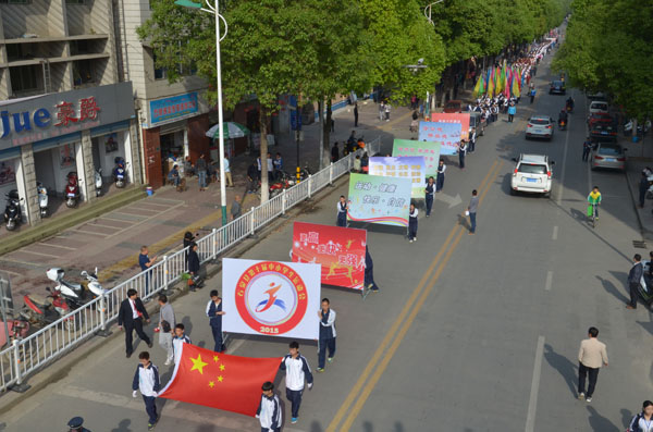 在豪邁的運(yùn)動員進(jìn)行曲中,彩旗隊(duì)、運(yùn)動員代表隊(duì)、裁判員方隊(duì)、文藝表演方隊(duì)依次走過主席臺接受檢閱。運(yùn)動員們鏗鏘有力的步伐、響亮的口號,以颯爽的英姿展示著我縣廣大師生健康向上、團(tuán)結(jié)進(jìn)取的良好精神風(fēng)貌。本屆運(yùn)動會為期三天,分設(shè)城關(guān)中學(xué)、縣體育場兩個賽點(diǎn),來自全縣各中小學(xué)26支代表隊(duì)931名運(yùn)動員將參加籃球、乒乓、田徑三大項(xiàng)共62個小項(xiàng)的比賽,參加本次開幕式文藝表演的學(xué)生達(dá)2000人,運(yùn)動會規(guī)模創(chuàng)歷年之最。