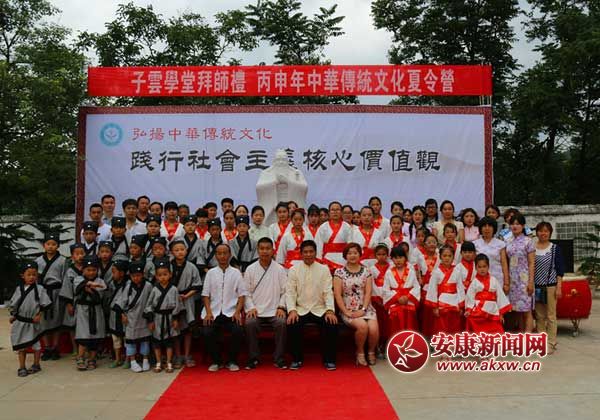 目前,學(xué)校先期開啟中華傳統(tǒng)文化夏令營(yíng),已招收50名新生,將用四個(gè)月的時(shí)間實(shí)施“伏羲教育”小學(xué)段的教育改革探索,傳承國學(xué)經(jīng)典,弘揚(yáng)中華優(yōu)秀傳統(tǒng)文化,搭建“修身齊家,構(gòu)建和諧社會(huì)”為宗旨的社會(huì)教育與家庭教育相結(jié)合的新型教育模式。在開營(yíng)儀式上,石泉“伏羲學(xué)校”的老師、學(xué)生、家長(zhǎng)身著民族傳統(tǒng)服裝開展祭孔典禮、拜師儀式、集體誦讀《弟子規(guī)》等形式弘揚(yáng)國學(xué)。