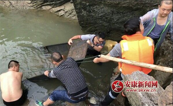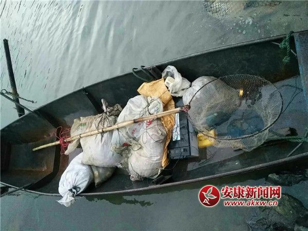 當(dāng)日下午16:00時(shí)許,石泉縣水利局接舉報(bào)稱石泉水庫大壩下有人非法電魚消息后,當(dāng)即指派漁政執(zhí)法人員前往查處。經(jīng)現(xiàn)場查看,水庫大壩下卻有一疑似捕魚船只在壩下江面游弋,行跡十分可疑。由于大壩下游山體險(xiǎn)峻,執(zhí)法人員只好采取一邊分組盯守,一邊通知相關(guān)人員準(zhǔn)備橡皮伐及攀巖工具。于此同時(shí),城關(guān)派出所民警也聞訊出警進(jìn)行現(xiàn)場警戒,并共同商議行動方案。執(zhí)法人員決定冒險(xiǎn)分兩組分別向非法捕撈嫌疑人藏匿地點(diǎn)靠攏。一組劃橡皮伐由漢江左岸向壩基右岸靠攏,一組由右岸峭壁攀巖而下,由于灘險(xiǎn)流急,崖高壁陡,兩組人員行進(jìn)都十分困難且相當(dāng)危險(xiǎn),稍有不慎就有墜河跌崖的危險(xiǎn)。當(dāng)執(zhí)法人員抵達(dá)右岸壩基時(shí),非法捕撈嫌疑人早已利用熟悉地形和水性好的優(yōu)勢先將船只灌水沉入江中后,又將漁具藏匿后選擇隱蔽路線逃之夭夭。經(jīng)執(zhí)法人員進(jìn)行近一個(gè)小時(shí)的仔細(xì)搜索,終于在壩基右岸一巖壁下十分隱蔽的水灘里發(fā)現(xiàn)了沉入水下的船只。由于船只藏匿地地勢險(xiǎn)要,且水下水情不明,執(zhí)法人員幾經(jīng)試探后,才小心謹(jǐn)慎的潛入水下將沉船拖出水面,F(xiàn)場共收繳電瓶等非法捕撈漁具10余件,漁獲物40余斤。