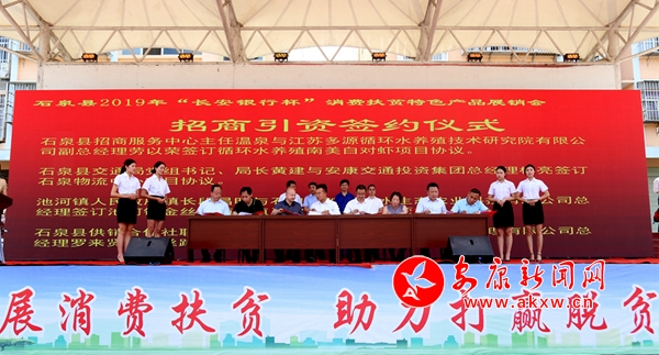 現(xiàn)場還簽訂了循環(huán)水養(yǎng)殖南美白對蝦、石泉物流中心、池河鎮(zhèn)金絲皇菊種植及農(nóng)副產(chǎn)品加工、絲路桑海生態(tài)酒店四個招商引資協(xié)議。