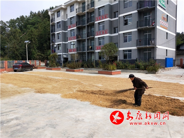 盤龍村四組村民方向聰把剛剛收割的谷子背到了村委會(huì)前的廣場(chǎng),他一邊攤開晾曬,一邊說道:“今年我種了4畝水稻,眼下到了最佳的收割期,農(nóng)忙時(shí)節(jié),我把女婿也叫回來一起幫忙收割水稻。之前一直下雨,趁著這兩天大晴天,趕緊把谷子曬干,以后能夠更好儲(chǔ)存。”