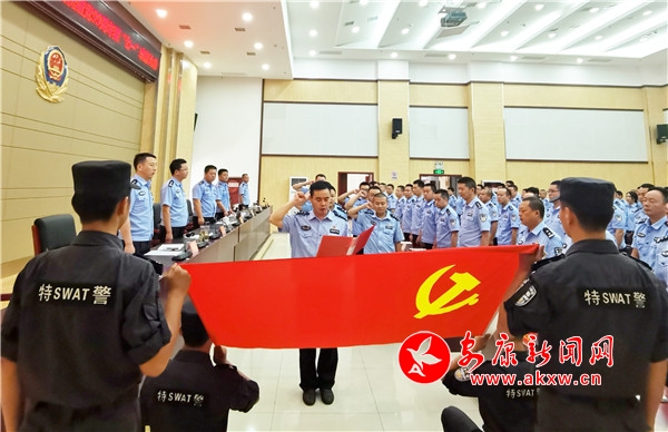 大會(huì)在莊嚴(yán)的國歌聲中拉開序幕。會(huì)議首先由局黨委委員、副局長王君同志為全體黨員作專題黨課輔導(dǎo),王君同志圍繞《中國共產(chǎn)黨政法工作條例》出臺(tái)的背景、重大意義、遵循原則、主要內(nèi)容、政法工作的領(lǐng)導(dǎo)、政法單位黨組(黨委)職責(zé)任務(wù)、 政法工作重大事項(xiàng)請示報(bào)告、政法工作決策和執(zhí)行、政法工作的監(jiān)督以及加強(qiáng)學(xué)習(xí)貫徹和落實(shí)等十個(gè)方面,對《條例》作了輔導(dǎo)講解。隨后,大會(huì)進(jìn)行了新發(fā)展黨員入黨宣誓、全體黨員一同重溫了入黨誓詞。
