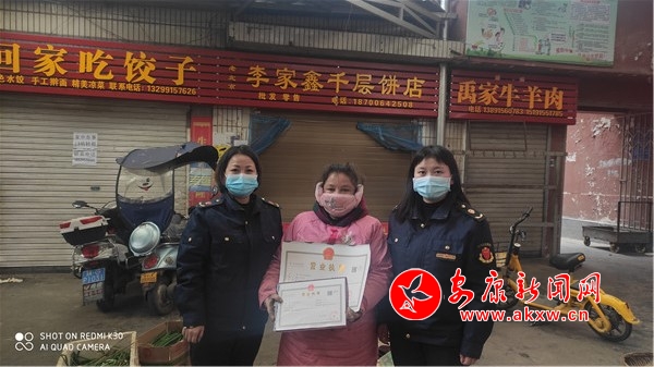 當天,在桃園路、陽光麗城農(nóng)貿(mào)市場,像王玉琴這樣足不出戶收到營業(yè)執(zhí)照的商戶有17家,市場商戶由于生意繁忙,且部分都是年紀較大的老年人,不懂如何辦理營業(yè)執(zhí)照,成了“無證商販”。為了規(guī)范市場經(jīng)營,本著“為人民服務”的工作態(tài)度,石泉縣市場監(jiān)管局工作人員聯(lián)系市場管理方后,決定主動上門服務為商戶辦理個體工商戶營業(yè)執(zhí)照,商戶只需要準備一部智能手機和本人身份證即可現(xiàn)場辦理,辦理好后,工作人員將打印好的營業(yè)執(zhí)照送到每一位商戶手中,獲得了商戶們的一致好評。