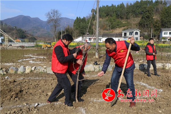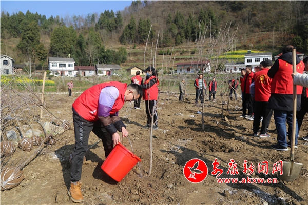 全體鎮(zhèn)機(jī)關(guān)干部、工作隊(duì)員和30余名青年志愿者一到中壩村植樹點(diǎn)就拿起工具,積極投身植樹活動(dòng)。在活動(dòng)現(xiàn)場,按照技術(shù)員的指導(dǎo),大家?guī)兹艘唤M,分工明確、配合默契,揮鍬鏟土、扶植樹苗、培實(shí)新土,忙得熱火朝天。周邊群眾紛紛加入義務(wù)植樹隊(duì)伍,經(jīng)過辛勤勞動(dòng),550余株櫻桃樹在春風(fēng)里昂然挺立,煥發(fā)出勃勃生機(jī)。為確保植株成活率,林業(yè)技術(shù)人員還進(jìn)行了現(xiàn)場指導(dǎo)。