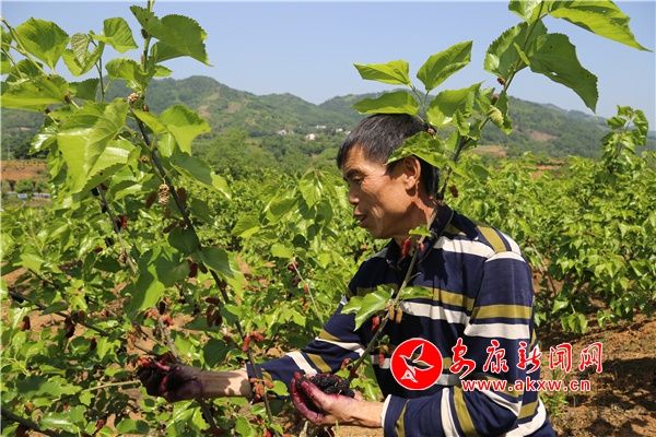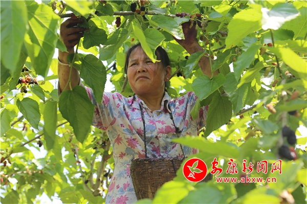 以“滄海桑田”聞名的明星村種植桑樹(shù)上千余畝,其中果桑面積占有300余畝,盛果期的果桑樹(shù)掛果量可達(dá)2500斤每畝。五月正是桑葚采摘上市的時(shí)候,果園里到處都能看到農(nóng)戶們忙著采摘成熟桑葚的身影。據(jù)了解,這些農(nóng)民都是附近的村民,他們將桑葚采摘后送往加工廠,每斤桑葚能賺1元錢,手腳麻利的村民一天能摘上百斤,也算是一筆可觀的收入。