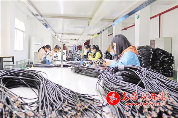 通過(guò)加工電子線束,黃海英們的生活得到了顯著改善。“以前送完孩子上學(xué),就沒(méi)事干了。自從我們這里有了這家電子線束加工廠,每天趁著娃上學(xué)后來(lái)這里做工,一月能掙3500多元,隨著技術(shù)熟練工資還會(huì)漲,日子越來(lái)越有奔頭了。”黃海英說(shuō)。