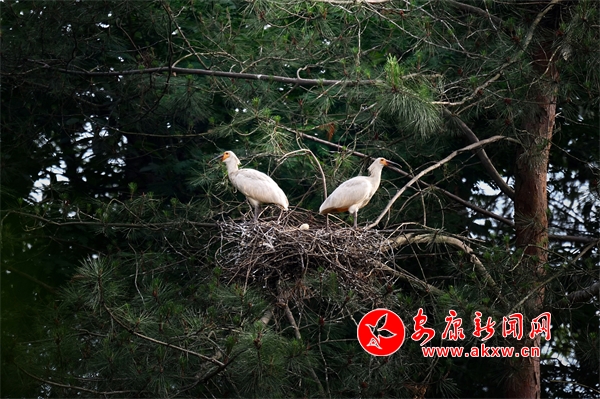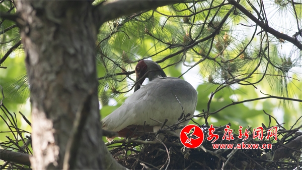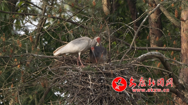 4月中旬,陜西石泉城關(guān)鎮(zhèn)絲銀壩村草池灣的朱鹮寶寶要出生啦!朱鹮爸爸和朱鹮媽媽一邊孵化寶寶,一邊擴(kuò)建裝修巢穴。它們還在巢穴里鋪上柔軟的干草、羽毛,等待寶寶出生。