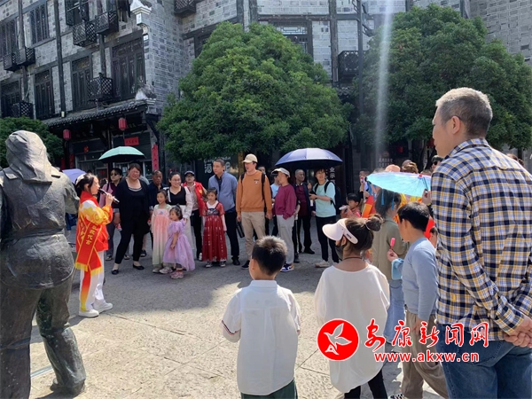 “各位游客大家好,我是自石泉縣城關(guān)一小的小小講解員,歡迎大家跟隨我的腳步游覽石泉秦巴老街”。這五一假日期間從石泉秦巴老街里傳來(lái)的朗朗童聲,來(lái)自“小小講解員·童音話(huà)石泉”——石泉縣全域旅游紅領(lǐng)巾講解員培訓(xùn)班的小朋友們用稚嫩且熟練的話(huà)語(yǔ)、自信的神態(tài)向往來(lái)游客們介紹了石泉老街東西城門(mén)、石泉縣衙、禹王宮、江西會(huì)館以及老街上的美食,小小講解員各個(gè)儀態(tài)大方、表達(dá)清晰、發(fā)揮自如,贏得了游客們駐足圍觀,時(shí)不時(shí)傳來(lái)陣陣掌聲和夸獎(jiǎng)。