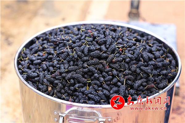 5月18日,石泉縣池河鎮(zhèn)明星村桑果采摘園門(mén)口,桑農(nóng)們正在將新鮮采摘的桑葚進(jìn)行統(tǒng)一稱(chēng)重售賣(mài)。據(jù)了解,每日可采摘桑葚1000余斤,每斤售價(jià)3元,有效增加了蠶農(nóng)收入,助推鄉(xiāng)村振興。 (圖文/汪龍濤 劉丹)TkN安康新聞網(wǎng)