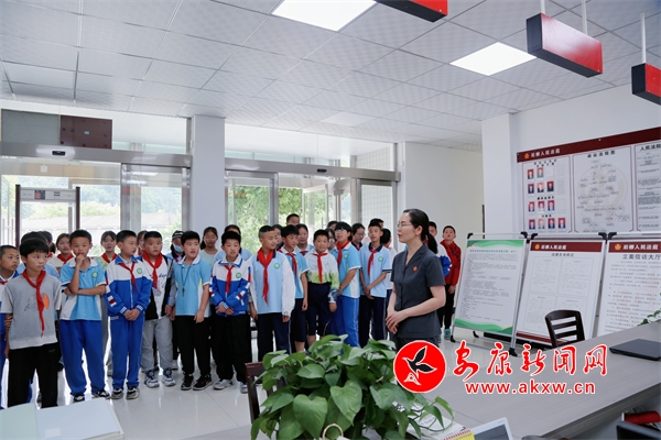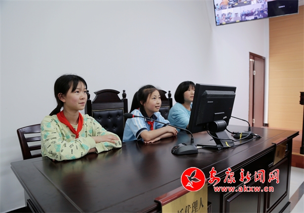 本網(wǎng)訊(通訊員 潘蕾蕾)為加強(qiáng)對(duì)未成年人的法治宣傳教育,促進(jìn)青少年健康全面發(fā)展,6月3日,石泉法院后柳法庭舉辦“‘未’你而來 法護(hù)成長(zhǎng)“法庭開放日”活動(dòng),邀請(qǐng)后柳鎮(zhèn)中心小學(xué)40余名師生走進(jìn)法庭,參觀訴訟服務(wù)大廳、審判法庭,敲法槌、“客串”法官,“零距離”感受法庭的莊嚴(yán)。