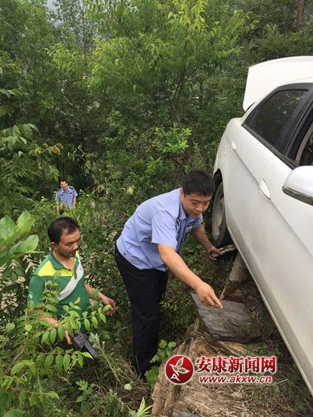 新手司機(jī)開車緊張致車掉下路沿 警民合力將車抬起