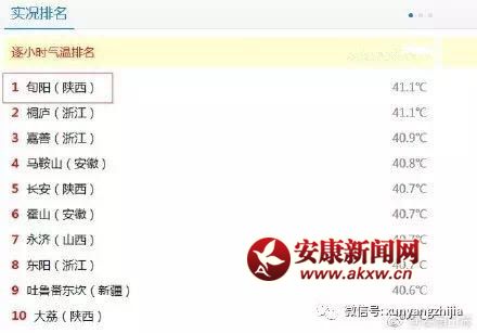 安康新聞網(wǎng)訊(通訊員 梁慧)連日來(lái),“旬陽(yáng)”牌烤箱火力全開,溫度一再飆升,據(jù)中央氣象臺(tái)發(fā)布的全國(guó)氣溫實(shí)況排名中,旬陽(yáng)縣以41.1℃排名全國(guó)第一。