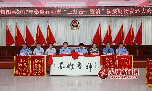 安康新聞網(wǎng)訊(通訊員 祝康 )7月27日,旬陽(yáng)縣公安局舉行了2017秦鷹行動(dòng)暨“三打擊一整治”專(zhuān)項(xiàng)斗爭(zhēng)涉案財(cái)物發(fā)還大會(huì)。該縣副縣長(zhǎng)張成功出席大會(huì),親手將該局在專(zhuān)項(xiàng)斗爭(zhēng)期間,追繳的總價(jià)值103余萬(wàn)元涉案錢(qián)款交到受害群眾手中。
