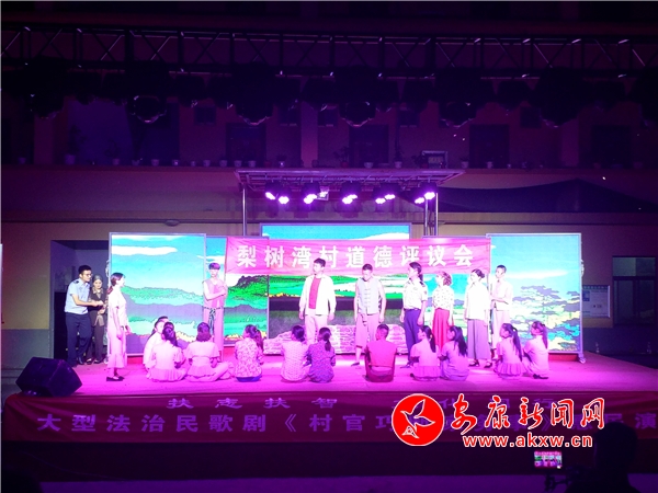 8月8 日晚上的旬陽(yáng)縣金寨鎮(zhèn)權(quán)口村,聚集了近千名前來(lái)觀看大型法治•旬陽(yáng)民歌劇《村官巧斷家務(wù)事》的老百姓。