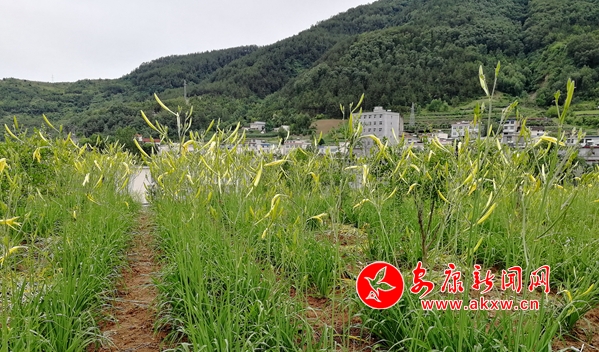 “黃花菜不僅是金竹村的特色,也是我們?nèi)?zhèn)、全縣的特色!”鎮(zhèn)黨委書記胡廣濤自豪地介紹道,自2016年全縣推廣種植黃花菜以來,雙河鎮(zhèn)充分依托土地資源優(yōu)勢,抓住時(shí)機(jī)優(yōu)先發(fā)展,通過“黨支部+合作社+貧困戶”模式先后在金竹、三岔、鯉魚、平河等9個(gè)村累計(jì)種植2300余畝,受益農(nóng)戶達(dá)321戶1029人。貧困戶既能在基地務(wù)工,又能分紅,實(shí)現(xiàn)了在家門口賺錢,小小黃花菜已經(jīng)成為雙河百姓興業(yè)增收的“致富之花”。