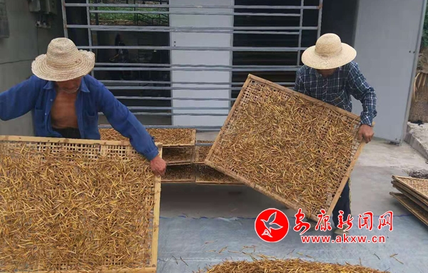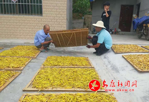 當(dāng)然,要把黃花菜制成成品不單單是采摘回收那么簡單,還需要經(jīng)過殺青、晾曬、烘烤、挑選等多道程序。“現(xiàn)在我們平均每天可以回收新鮮黃花菜四五百斤,制成干黃花后,市場價(jià)每斤可以賣到30元左右。”金竹村支部書記、天門山農(nóng)業(yè)專業(yè)合作社理事長詹先斌邊忙碌邊向我們介紹道。三年來,在他和鄉(xiāng)親們的共同努力下,“金竹黃花”在當(dāng)?shù)氐拿麣庠絹碓巾懀鹬翊逄扉T山農(nóng)業(yè)專業(yè)合作社也一步步發(fā)展壯大,成長為一家集種植、生產(chǎn)、加工、銷售黃花菜為一體的綜合性農(nóng)業(yè)專業(yè)合作社,詹先斌成為了村里名副其實(shí)的致富“領(lǐng)頭人”。