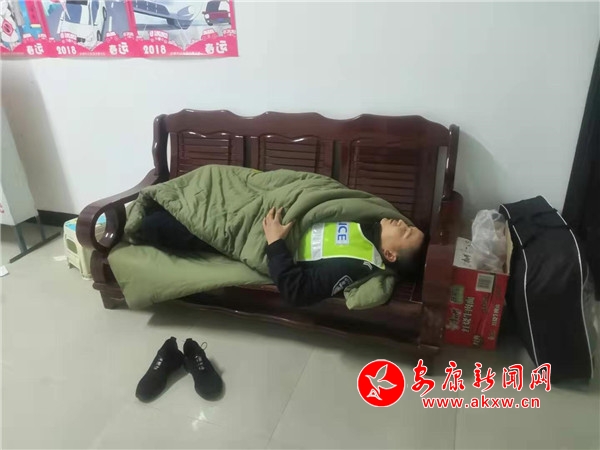 在神河中隊,全體民警迅速歸隊守護一方平安。原定于正月初八結(jié)婚的崔鵬程做出推遲婚期的決定,妻子屈曼不僅支持,也在第一時間趕到了神河鎮(zhèn)中心衛(wèi)生院的工作崗位上。小崔白天負責(zé)交通要道口湖北等外來車輛的排查篩查,晚上還要加班整理各類報表,同時兼顧日常的交管業(yè)務(wù),連續(xù)多日的嚴寒導(dǎo)致其患上重感冒,為了不影響工作,屈曼在中隊辦公室為小崔掛上了點滴。在神河高速路口設(shè)置的檢疫站上,中隊民警路紀煒全天候值守,淋著小雨患上風(fēng)寒感冒出現(xiàn)發(fā)燒癥狀后,在同事的多次勸說下才去縣醫(yī)院檢查治療,病情稍有好轉(zhuǎn),立即向領(lǐng)導(dǎo)申請返回崗位。