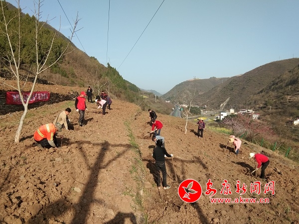 “我們這年齡也大了,出去務(wù)工也難,靠種地收入低,這次剛好社區(qū)連片栽植桃樹,這是個(gè)好機(jī)會(huì),我地出租給社區(qū)集體,我在合作社務(wù)工每天80元工資,見效益后我們還可以分紅。”金河口社區(qū)貧困戶老江手握樹苗別提有多高興了。